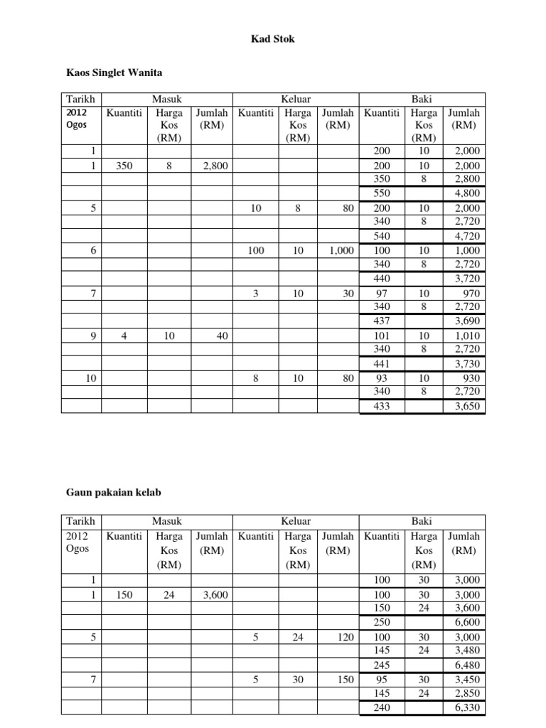 Prinsip Perakaunan Spm Contoh Kad Stok