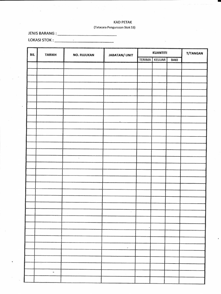 Borang Stok Kad Petak Tps 53 Pdf